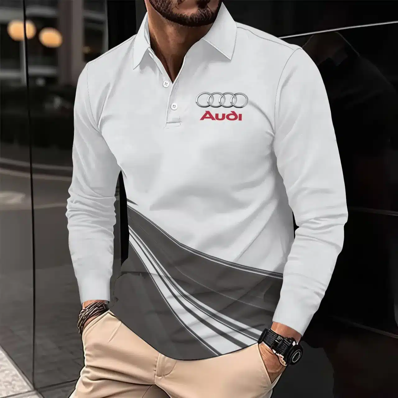 Construction: Each long-sleeve polo is custom printed, cut, and sewn individually—minor variations at seams or sleeves may occur due to the handmade production process.